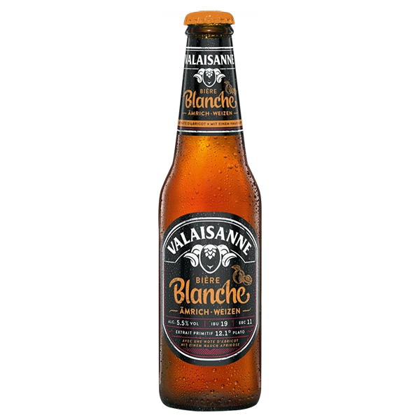 Craft beer Valaisanne Blanche wird von Brasserie Valaisanne in Sion (Wallis, Schweiz) gebraut