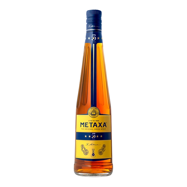 Genießen Sie die Eleganz von Metaxa 5*****, einem griechischen Klassiker mit einem Alkoholgehalt von 38%. Dieser einzigartige Brandy-Likör kombiniert ausgewählte Weindestillate mit griechischem Honig und erlesenen Kräutern. Das Ergebnis ist ein harmonischer Genuss voller Charakter und Tradition. Ideal für Liebhaber von hochwertigen und exquisiten Likören.