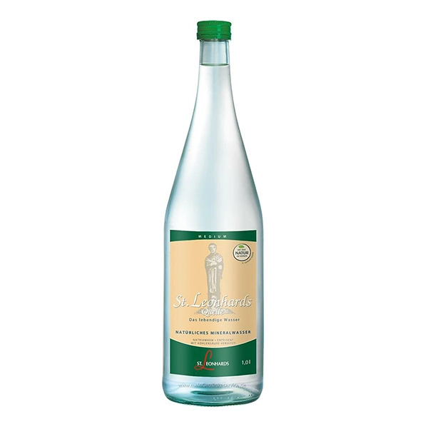 Mineralwasser St. Leonhards Quelle, medium, Glas – 6 x 1 Liter