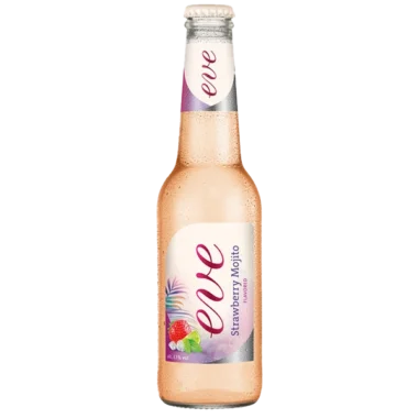 Eve Strawberry Mojito ist die spritzige Interpretation des kubanischen Klassikers mit dem Geschmack von fruchtig frischen Erdbeeren und einem Hauch Rum