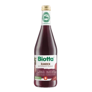 Geniessen Sie den köstlichen BIO-Randen-Direktsaft von Biotta, der reich an Mineralien und Vitaminen ist, die Verdauung unterstützt und den Körper anregt.
